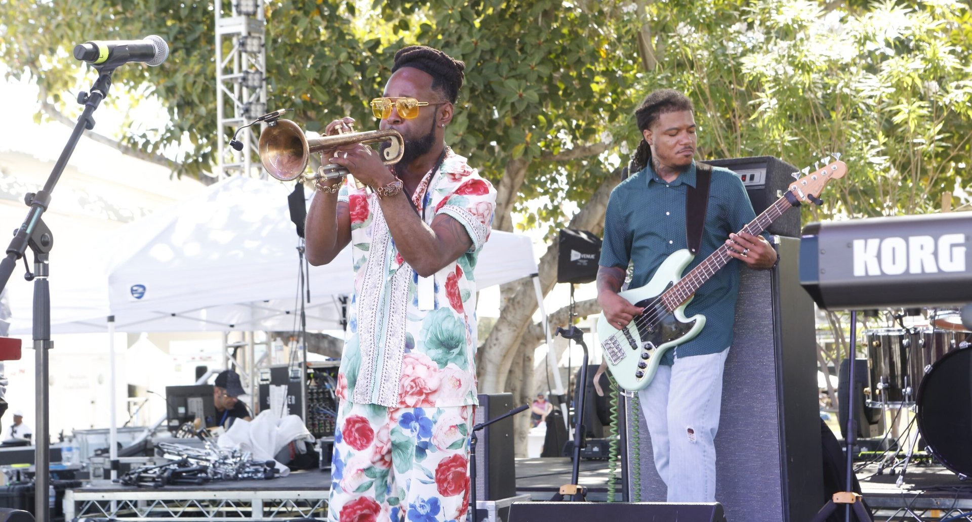 A polished, cultural event celebrating International Jazz Day with nationally recognized artists in an outdoor setting.